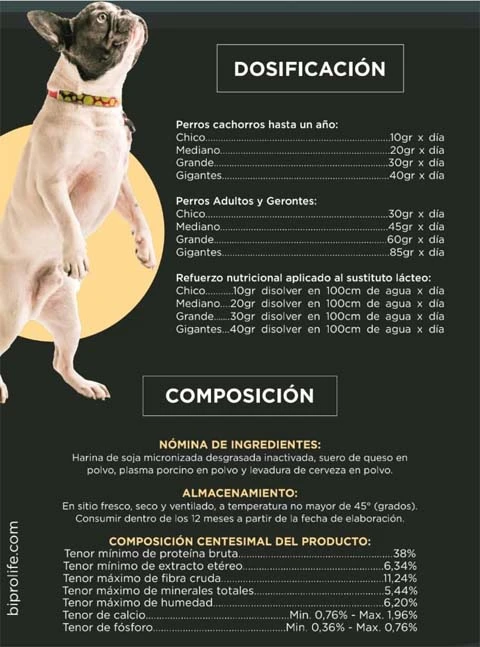 Dale Biprolife a tu perro 30 minutos antes de alguna de sus comidas en el dia.