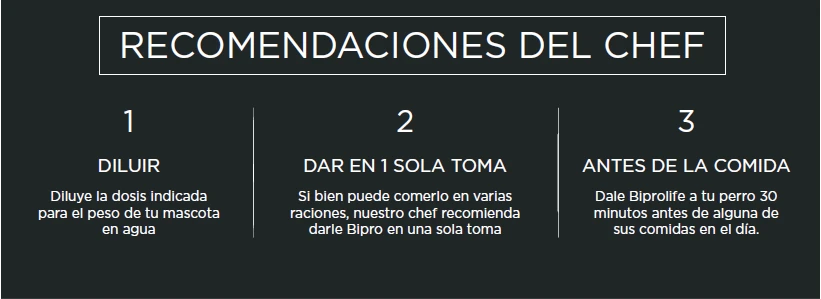 Si bien puede comerlo en varias raciones, nuestro chef recomienda darle Bipro en una sola toma.